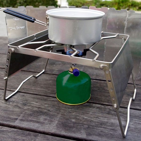 ガソリンストーブの強化力にも耐えうる強固なステンレス製。ダッチオーブンやスキレットを載せてもビクともしない強度と安定性を保ちます。