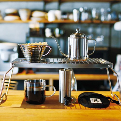 お湯を沸かすところからドリップまで一台でできる、グリル付きのコーヒードリップスタンドです。口部分のスリットから抽出されたコーヒーの量が見える構造になっています。