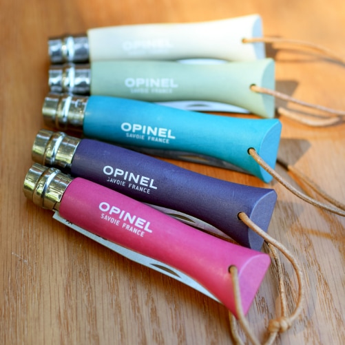 カラーバリエーション豊富なColoramaシリーズは、色鮮やかなハンドルと、持ち運びに便利な革紐が特徴。錆に強く、頻繁なメンテナンスが不要なステンレススチールの刃の折りたたみナイフです。革紐付きなのに重量約29gと軽量な点も見逃せません。