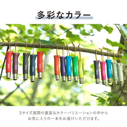 カラーバリエーション豊富なColoramaシリーズは、色鮮やかなハンドルと、持ち運びに便利な革紐が特徴。錆に強く、頻繁なメンテナンスが不要なステンレススチールの刃の折りたたみナイフです。ペティナイフとしても使いやすいサイズ感で、果物や小さめの野菜、薬味を刻むのにもぴったり。簡単なDIYやキャンプでも活躍する多用途な優れものです。