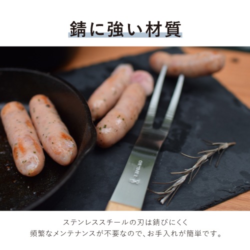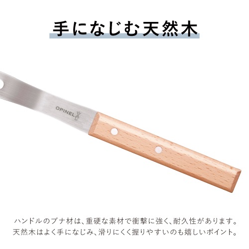 フォークは、切れ味がよく錆に強いステンレススチールを採用。ハンドルに使用されているブナ材は、重硬で衝撃に強く、耐久性に優れた素材です。