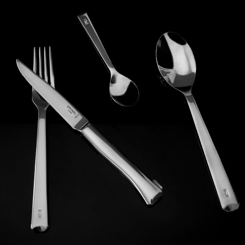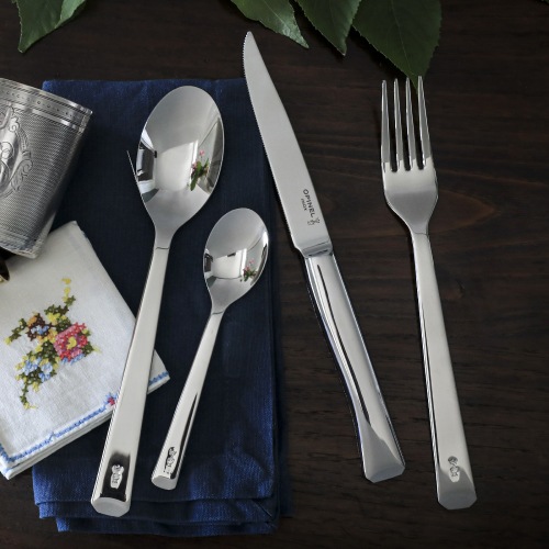 世界中の名だたるブランドのプロダクトデザインを手掛けるデザインチーム「BIG GAME」と共同開発したカトラリーシリーズ「Perpétue(パーペチュウ)」のテーブルスプーンです。OPINELのナチュラルなイメージとは一線を画すオールステンレスの現代的な雰囲気で、食卓を華やかにランクアップしてくれます。