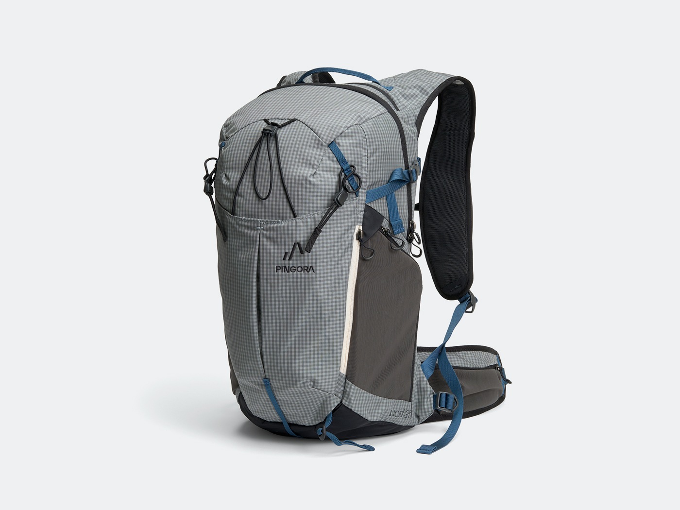 拡張性の高いプリーツ仕様のフロントポケットは、あえて伸縮素材を使用しないことで、伸びることなく長期にご使用いただける耐久性を保持。全モデル共通のショルダーハーネスに加え、ウエストベルトを搭載し、フィット感、収納性、アクセス性の向上に貢献しています。ポールを装備する機能とは別に、ハーネスに挟み込んで使用することで、バッグパッグをおろさずにポールを固定することもできます。
