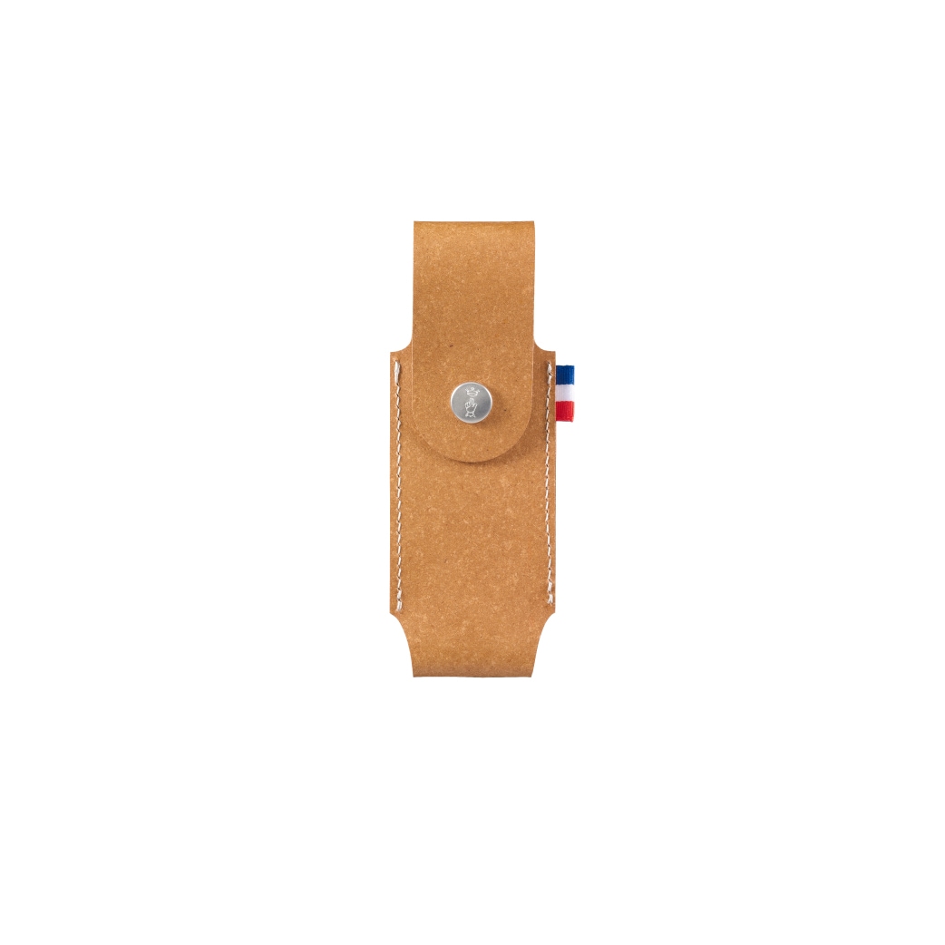 廃革繊維を加工したリサイクルレザーで作られたシンプルなナイフケース。OPINELの折りたたみナイフNo.07/08/09、Effilé スリムナイフ No.08に適合しています。スイスのデザインスタジオ「BIG-GAME」と共同開発した、Collection Franceシリーズのひとつです。