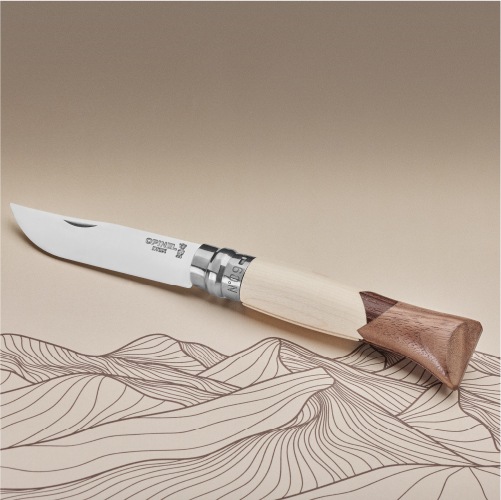 フランス産の3種類の木材を贅沢に使用した限定ナイフが登場。美しい山脈を表現したユニークなハンドルは木材工房の職人がひとつひとつ丁寧に作りあげています。