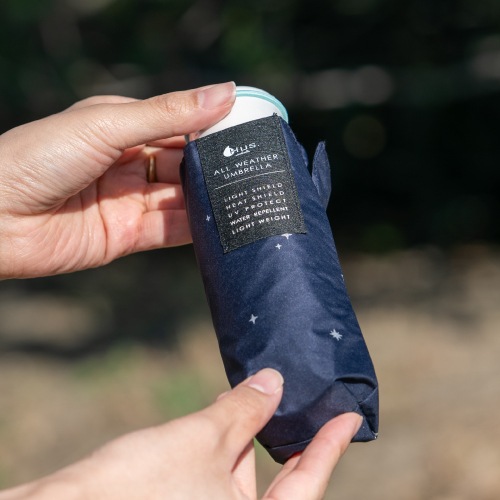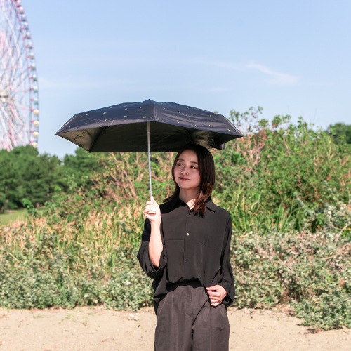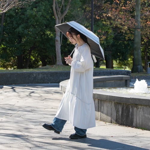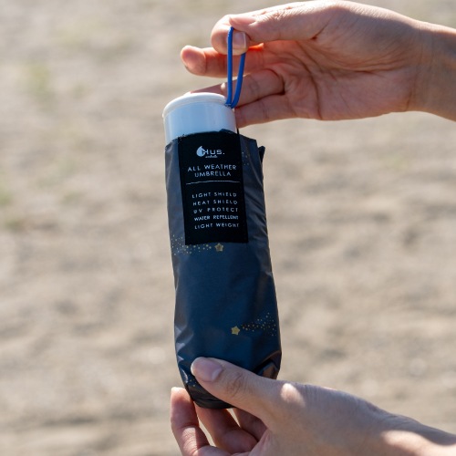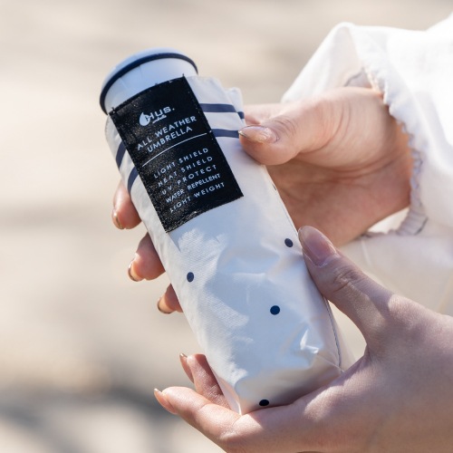 HUS.のオールウェザーシリーズは、紫外線や暑さ対策にはもちろん、急な雨や雪にも1本で対応できる手のひらサイズの晴雨兼用折りたたみ傘。生地裏面のコーティングにより、遮光率・UVカット率は100%で、遮熱効果も期待できます。カバンに入れっぱなしでも気にならないほど軽量なので、毎日の持ち歩き用にも最適です。