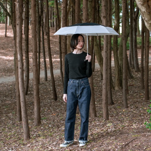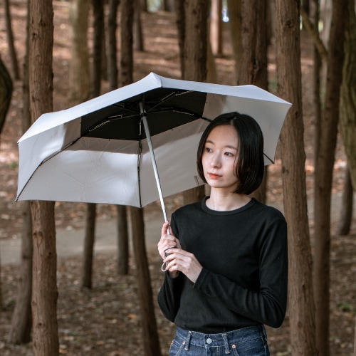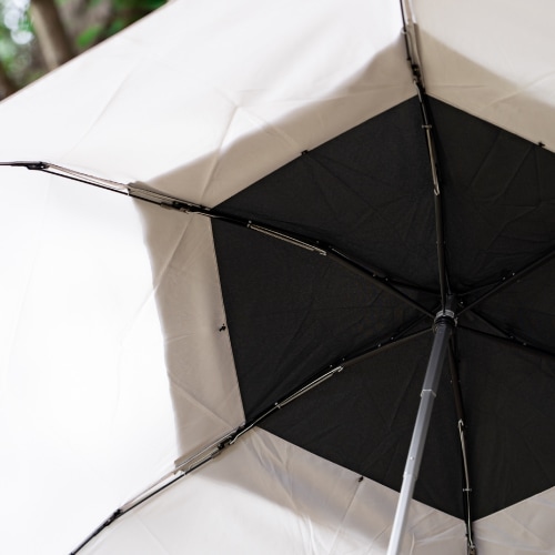風速15m/sまで耐えられる特殊な二重構造パネルを採用。裏側に入り込んだ風が、重なり合ったパネルの隙間から抜けていく散風システムになっています。UVカット率90%以上で、雨の日だけでなく日差しの強い日にも安心してご使用いただけます。つゆさきは丸い形状のセーフティーチップを採用しています。