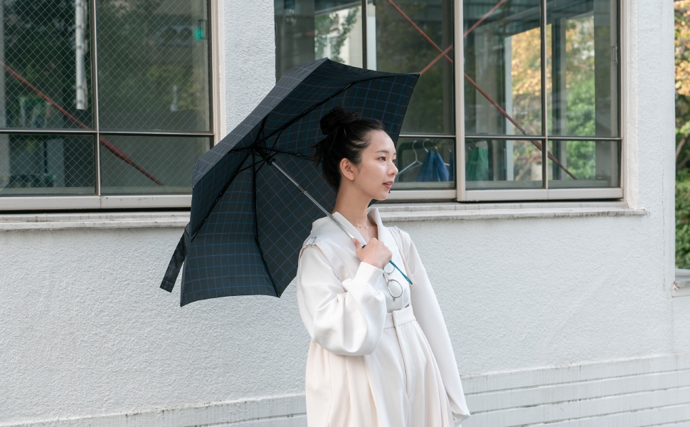 ワンタッチ開閉の軽量自動開閉傘です。ハンドルのボタンを押すと自動的に開閉するため、雨の日の乗り物の乗降時などに便利。すべての商品が安全機能付きで、シャフトが跳ね返らない構造なので安心してお使いいただけます。UVカット率は90%以上で、雨の日だけでなく日差しの強い日にも◎つゆさきは丸い形状のセーフティーチップを採用しています。