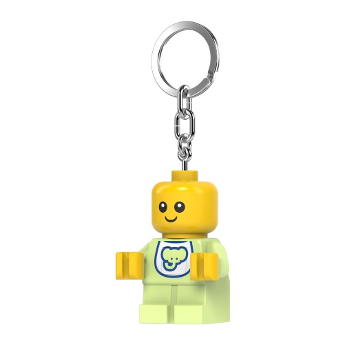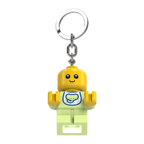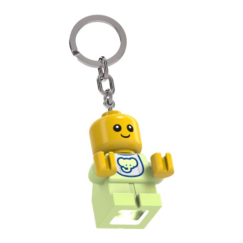 ベイビーのキーライトです。お腹のボタンを押すと足の裏にあるLEDライトが点灯し、離すと消えます。
