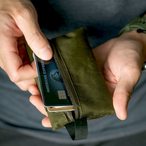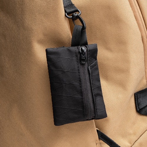 カードや小銭の収納に便利なループ付きの薄型ポーチです。ABLE CARRYのバックパックでも使用されているX-PacやCORDURAリップストップ210D re/corを使用しているので、バックパックと相性もよく、高い耐久性を誇ります。