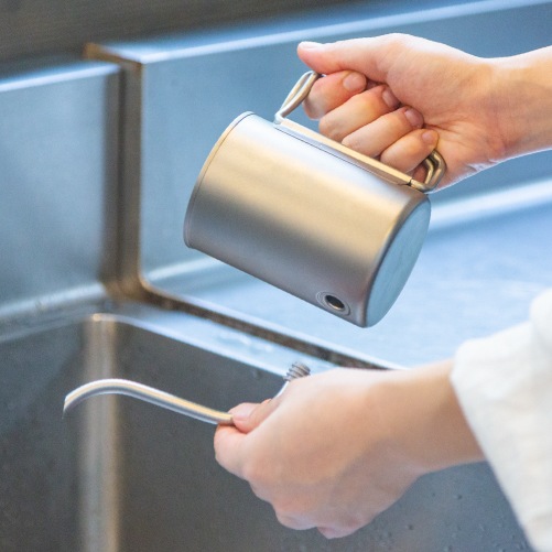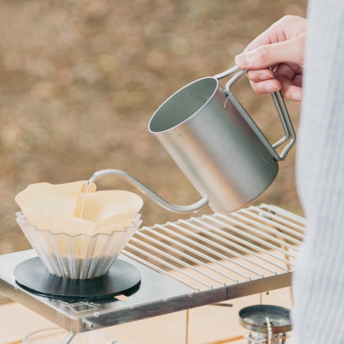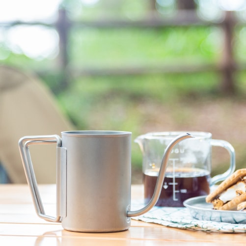 注ぎ口が取り外し可能で、ケトルとクッカーの2WAYで使用できます。狙ったところにお湯が注ぎやすい、ゆるやかにカーブした細口の注ぎ口が特徴です。持ち運びに便利な専用収納ケース付き。
