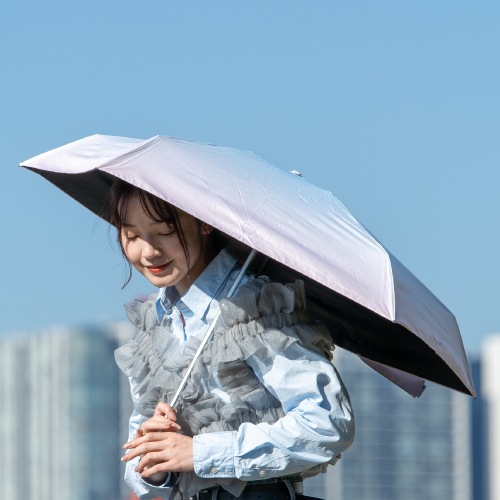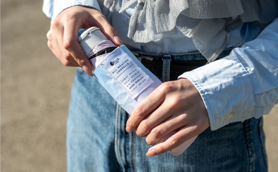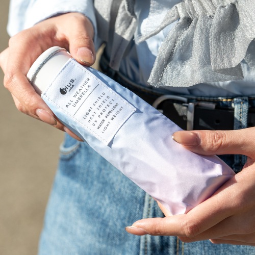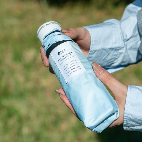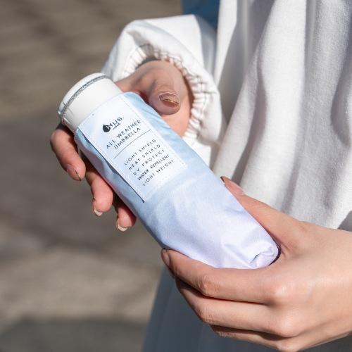 HUS.のオールウェザーシリーズは、紫外線や暑さ対策にはもちろん、急な雨や雪にも1本で対応できる手のひらサイズの晴雨兼用折りたたみ傘。生地裏面のコーティングにより、遮光率・UVカット率は100%で、遮熱効果も期待できます。カバンに入れっぱなしでも気にならないほど軽量なので、毎日の持ち歩き用にも最適です。