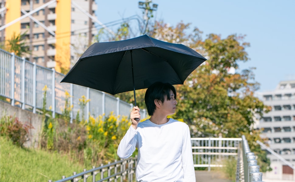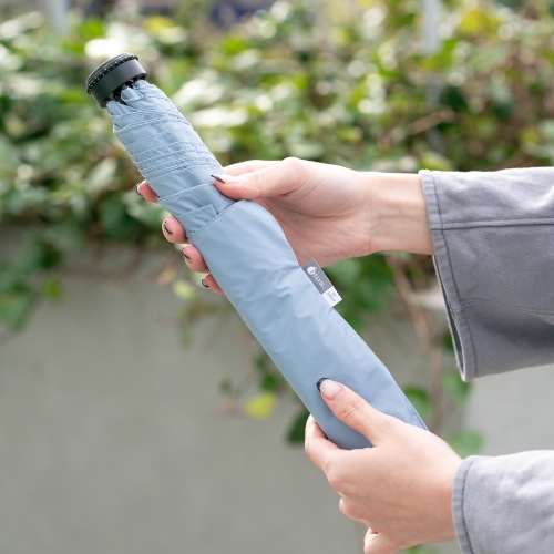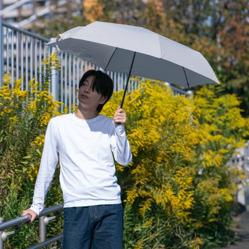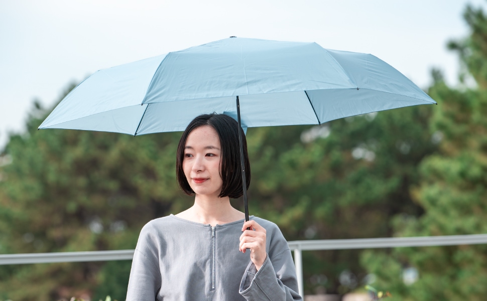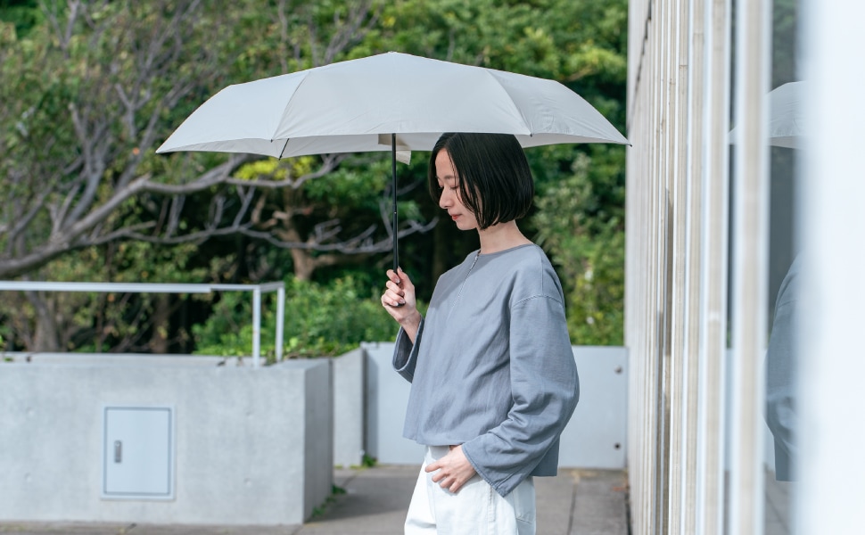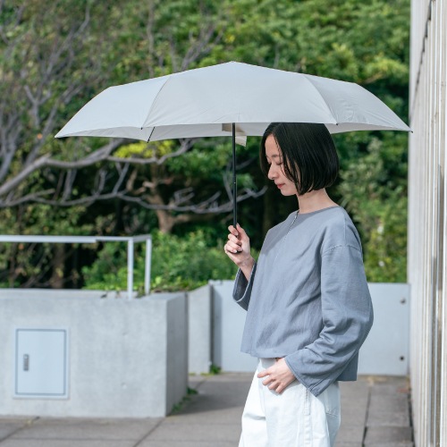 Gray Morn直径約107cmのワイドサイズで、しっかり雨をガードする軽量傘。