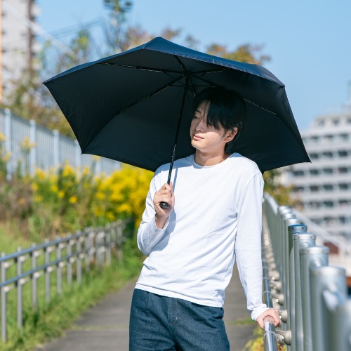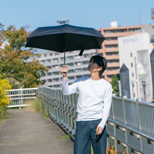 軽量生地を採用し、とことん軽さを追求したウルトラライト設計が特徴。雨や日差しをカバーするワイドサイズ6本骨の傘です。ハンドルには夜間の視認性を高めるリフレクター付きゴムバンドを装備しました。