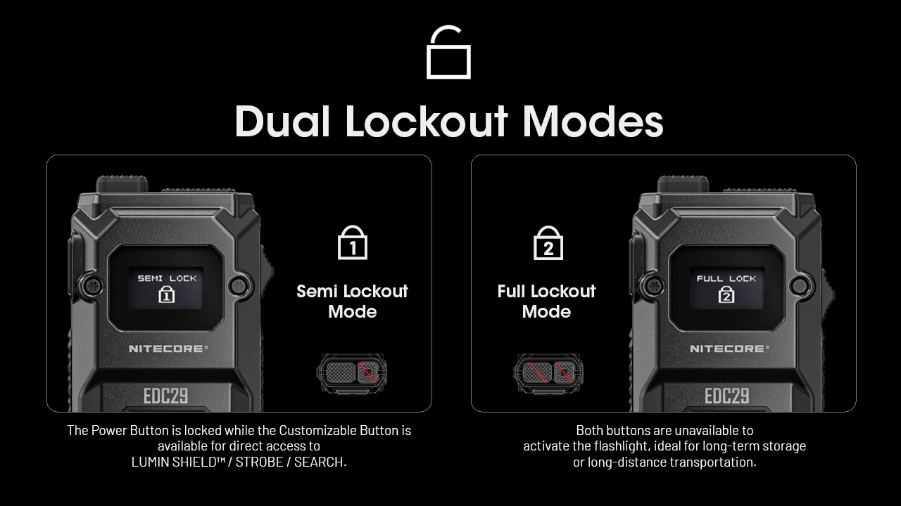 NITECORE EDC29は、最大出力6,500ルーメンのUHi 20 MAX LEDを2基搭載。最大40,230cdのピークビーム強度と最長400mの照射距離で、遠距離まで確実に視認できます。