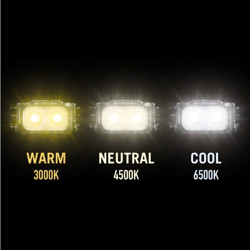 MCT(Multiple Color Temperatures)は、1つのライトで複数の色温度を切り替えられる機能です。ウォーム(約3000K)は霧や雨など視界の悪い環境に適し、ニュートラル(約4500K)は自然で見やすい標準光、クール(約6500K)は遠方照射や明るさを重視する場面に適しています。光を使い分けることで、キャンプや夜間行動、手元作業など、シーンに応じた最適な照明環境を実現します。